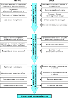 2. Анализ потоков денежных средств. Основная цель анализа - выявление уровня достаточности формирования денежных средств, эффективности их использования, а также сбалансированности положительных и отрицательных денежных потоков предприятия по объему и во времени. Потоки денежных средств анализируются по трем видам деятельности: основной, инвестиционной и финансовой (рис. 2).