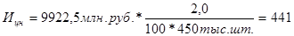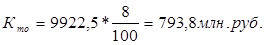 где Коб - капитальные вложения в оборудование, млрд. руб.; %Ицн - износ инструмента целевого назначения в процентах от стоимости оборудования, %.