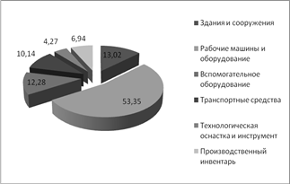 По результатам расчётов строим круговую диаграмму, отражающую структуру капитальных вложений в основные фонды (рисунок 1).