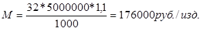 где ФЗПгод - годовой фонд заработной платы всех категорий работников, руб. (таблица 5); Овб.год - сумма годовых отчислений от фонда заработной платы в бюджет и внебюджетные фонды, руб. (таблица 5); Агод - годовые амортизационные отчисления на восстановление основных производственных фондов, руб. (таблица 2); Пб – балансовая прибыль, приходящаяся на одно изделие, руб.; N- годовая программа выпуска изделий, шт.