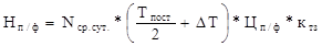 где Nср.сут - среднесуточный выпуск продукции, шт.; Тпост - период поставки полуфабрикатов и комплектующих изделий, 9 дней; DТ - страховой запас полуфабрикатов и комплектующих изделий, 4 дня; Цп/ф - цена полуфабрикатов и комплектующих на одно изделие, руб.; ктз - коэффициент, учитывающий транспортные заготовительные расходы. Среднесуточная потребность в полуфабрикатах и комплектующих изделиях вычисляется по формуле: