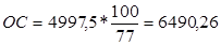 Нгот =33,3*3 = 99,9 млн. руб. 4.8 Определение величины нормированных оборотных средств предприятия (цеха)Общая величина оборотных средств предприятия (цеха) определяется суммой величины оборотных средств (инвестиций) в запасах полуфабрикатов и комплектующих изделий, величины оборотных средств в запасах малоценных и быстроизнашивающихся предметов, величины оборотных средств в незавершенном производстве, величины оборотных средств в расходах будущих периодов, величины оборотных средств в запасах готовой продукции на складе. Рассчитывается по формуле: ОСн =Нзап +Нп/ф +Нмбп +Нинстр +Ннп +Нбп +Нгот , руб. (47) где Нзап - величина оборотных средств (инвестиций) в запасах материалов, руб.; Нп/ф - величина оборотных средств (инвестиций) в запасах полуфабрикатов и комплектующих изделий, руб.; Нмбп - величина оборотных средств в запасах малоценных и быстроизнашивающихся предметов, руб.; Нинстр - величина оборотных средств в запасах инструмента целевого назначения, руб. Ннп - величина оборотных средств в незавершенном производстве, руб.; Нбп - величина оборотных средств в расходах будущих периодов, руб.; Нгот - величина оборотных средств в запасах готовой продукции на складе, руб. ОСн =1540+233,75+41,34+7,44+2764,07+311+99,9 = 4997,5 млн. руб. 4.9 Определение величины оборотных средств предприятия (цеха)Общую величину оборотных средств предприятия (цеха) можно рассчитать по формуле: