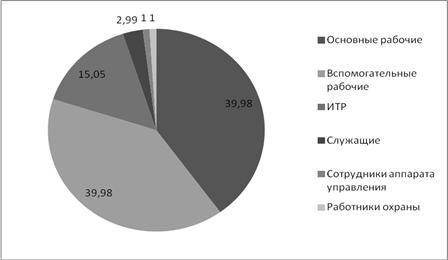 Строим круговые диаграммы, отражающие структуру численности работников (рисунок 5) и фонда заработной платы (рисунок 6). Рисунок 5 – Структура численности работников предприятия