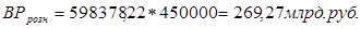 где ВРпр - величина годового выпуска продукции в стоимостном выражении, руб.; Робщ - общая численность работников предприятия, чел.