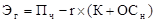 где r– реальный коэффициент ставки платы за кредит (0,1-0,15), К – капитальные вложения в основные производственные фонды, руб. (таблицы 2 и 4). ОСн - величина нормируемых оборотных средств предприятия (цеха), руб.;