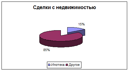 Такой бурный процесс развития ипотечного кредитования происходит в большей степени благодаря активизации банковского сектора, который старается предложить клиентам разнообразные ипотечные программы. Как уже было отмечено, появляются новые ипотечные банковские продукты, и, как и ожидалось, увеличивается конкуренция между банками. За 2005 год на рынок вышло порядка 10 банков, предлагающих ипотечные программы. Отчасти благодаря конкуренции процент по кредитам снизился. Так, по данным первого заместителя председателя правления Городского ипотечного банка Гасяка В., в 2001году процентные ставки на ипотечный кредит в банках составляли 15-20%. В 2004 году минимальные ставки по ипотеке составляли уже 10%. Таким образом, за 4 года процент за пользование ипотечным кредитом снизился вдвое. Снизились и расходы по оформлению кредита, например, многие банки уже не берут денег за рассмотрение заявки, а ведь еще в 2004 году эта услуга была исключительно платная. Кроме того, если в 2001 году размер предоставляемых кредитов составлял 70% от стоимости недвижимости, то сейчас банки предоставляют кредиты в размере 90%. Сегодня финансово-кредитные учреждения лояльно относятся к процедуре подтверждения платежеспособности заемщиков. Даже самые консервативные из них, например, Внешторгбанк, стали работать с серыми доходами на вторичном рынке. Кроме того, произошло еще одно важное изменение на рынке, банки стали уделять больше внимания ипотечным программам для молодых семей. Если начиналось все только с нескольких банков-первопроходцев, которые работали только с «белыми» доходами, то в 2005 году появились программы, которые позволяют привлекать к числу созаемщиков не только родственников. Появились также банки, которые работают по молодежному кредитованию с серыми доходами. Но, несмотря на то, что недвижимость в России покупает 41% представителей среднего класса, ипотечными кредитами пользуются не более 5% российских граждан. Также следует отметить, что процент ипотечных сделок в общем количестве сделок с недвижимостью составлял в 2003 году всего 1%, к концу 2004 года этот показатель вырос до 8%. Весь 2005 год количество сделок стабильно росло и в настоящее время количество сделок составляет 12-15% от общего количества сделок агентства (диаграмма 7)[11] . Диаграмма 7