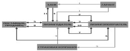 Рисунок 1 – Схема проведения лизинговой сделкиСубъектами классического лизинга являются три основных лица: - лизингодательhttp://www.e-college.ru/xbooks/xbook039/book/page.htm — физическое или юридическое лицо, которое за счет привлеченных и (или) собственных средств приобретает в ходе реализации договора лизинга в собственность имущество и предоставляет его в качестве предмета лизинга лизингополучателю за определенную плату, на определенный срок и на определенных условиях во временное владение и пользование с переходом или без перехода к лизингополучателю права собственности на предмет лизинга. Так как договор является исключительно предпринимательским, лизингодателем могут быть граждане - индивидуальные предприниматели; для юридических лиц заключение таких договоров должно соответствовать их правоспособности; - лизингополучательhttp://www.e-college.ru/xbooks/xbook039/book/page.htm — физическое или юридическое лицо, которое в соответствии с договором лизинга обязано принять предмет лизинга за определенную плату, на определенный срок и на определенных условиях во временное владение и в пользование в соответствии с договором лизинга; - продавецhttp://www.e-college.ru/xbooks/xbook039/book/page.htm — физическое или юридическое лицо, которое в соответствии с договором купли-продажи с лизингодателем продает лизингодателю в обусловленный срок имущество, являющееся предметом лизинга. Продавец обязан передать предмет лизинга лизингодателю или лизингополучателю в соответствии с условиями договора купли-продажи. Продавец может одновременно выступать в качестве лизингополучателя в пределах одного лизингового правоотношения. Все участники лизинговых операций делятся на прямых и косвенных. К прямым участникам лизинговой сделки относятся только три названных участника: лизингополучатель, лизингодатель, продавец (поставщик) лизингового имущества. Косвенными участниками лизинговой сделки считаются коммерческие и инвестиционные банки, которые кредитуют лизингодателя, гаранты лизинговых сделок, страховые компании, консалтинговые фирмы, посредники, лизинговые брокеры и другие хозяйствующие субъекты, которые принимают активное участие в организации и проведении лизинговой сделки, но тем не менее не относятся к ее прямым участникам. Существенные условия договора лизинга: - Условие о предмете лизинга; - Условие о продавце предмета лизинга; - Условие об исключительно предпринимательской цели использования предмета лизинга. В случае отсутствий данных условий в тексте договора, он будет считаться незаключённым. Предметом лизинга (лизинговое имущество) могут быть любые непотребляемые вещи, в том числе предприятия и другие имущественные комплексы, здания, сооружения, оборудование, транспортные средства и другое движимое и недвижимое имущество, которое может использоваться для предпринимательской деятельности. Предметом лизинга не могут быть земельные участки и другие природные объекты (ст.666 ГК РФ), а также имущество, которое федеральными законами запрещено для свободного обращения или для которого установлен особый порядок обращения. Предмет лизинга, переданный во временное владение и пользование лизингополучателю, является собственностью лизингодателя. Предмет лизинга, переданный лизингополучателю по договору финансового лизинга, учитывается на балансе лизингодателя 