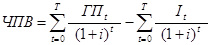 де і – ставка дисконтування, що відображає бажаний рівень прибутковості інвестицій з урахуванням інфляції та ризику; ГПt – чистий грошовий потік від операційної діяльності на t -му кроці розрахунку; It – інвестиційні витрати в період t (грошовий відтік від інвестиційної діяльності в період t ).