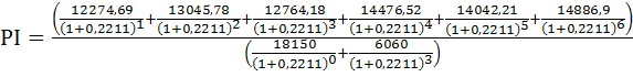 Рентабельність інвестицій PI – це показник, що дозволяє визначити, якою мірою зростає цінність фірми (багатство інвестора) у розрахунку на 1 грн. інвестицій. Розрахунок цього показника рентабельності здійснюється за формулою