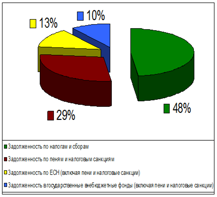 Рис. 3 Структура совокупной задолженности по обязательным платежам (налоги, сборы, платежи в государственные внебюджетные фонды, пени, штрафные санкции) по состоянию на 01.01.2009 г., в % Приложение Г