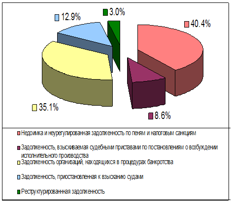Рис. 4 Структура задолженности по налогам и сборам по данным УФНС по Рязанской области Приложение Д