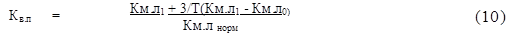 Км.л норм = нормативное значение коэффициента текущей ликвидности;