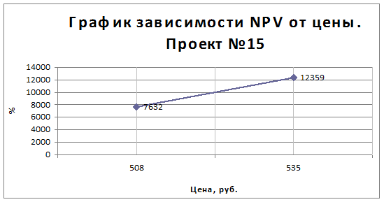 В результате расчетов выяснилось, что NPV чувствителен к изменению цены. При снижении цены на 5% проекты не будут приносить убытки. NPV проектов №3 снизится в 3 раза, №12 в 1,5 раза, №15 в 1,6 раз.