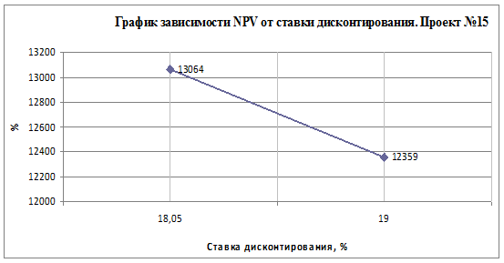 Если предположить, что рисковость проекта, например, была переоценена, и использовать ставку дисконтирования, равную 18,05%, то NPV соответственно увеличится. Наибольшая зависимость от ставки дисконтирования проявляется в проекте №3.