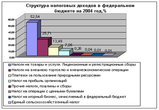 Структура доходов в федеральном бюджете на 2003 год Налоги и сборы являются основными источниками формирования не только федерального, но и региональных и местных бюджетов. Данные свидетельствуют, что 92,21 % всех доходов бюджета составляют налоговые доходы. Неналоговые доходы составляют только 7,10% от всех доходов бюджета. Также в доходы федерального бюджета включаются средства следующих целевых федеральных бюджетных фондов : Федерального дорожного фонда, Федерального экологического фонда, Государственного фонда борьбы с преступностью, Фонда развития таможенной системы, Федерального фонда Государственной налоговой службы и Федеральной службы налоговой полиции Российской Федерации и т.п. Эти доходы составляют 0,69%. Структура налоговых доходов в федеральном бюджете на 2003 год