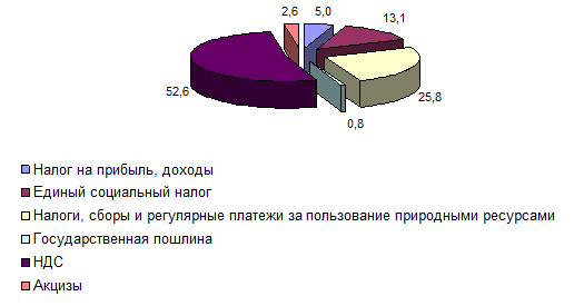 Структуру налоговых доходов федерального бюджета Российской Федерации за 2009 г. наглядно продемонстрируем в виде диаграммы, представленной на рисунке 2.1.3.