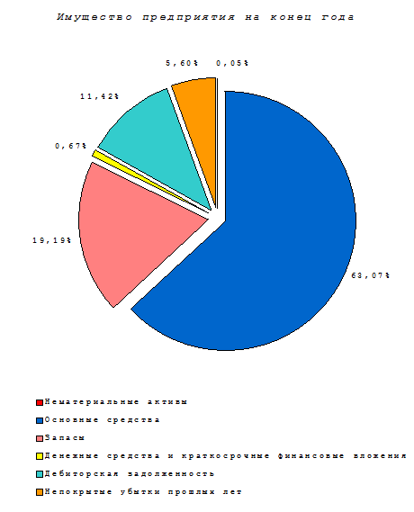 Матричные балансы существенно расширяют информационную базу для финансового анализа. С их помощью можно: определить увязку статей актива (имущества предприятия) и статей пассива баланса (источники средств); рассчитать структуру и определить качество активов по балансу предприятия и достаточность источников их финансирования; рассчитать весь набор показателей и коэффициентов, необходимых для оценки финансовой устойчивости, платежеспособности, использования ресурсов предприятия; объективно оценить финансовое состояние предприятия, выяснить причины его изменения за отчетный период; установить параметры, характеризующие приближение предприятия к порогу неплатежеспособности (банкротству). Баланс денежных поступлений и расходов предприятия увязывает бухгалтерский баланс с финансовыми результатами работы, наличием денежных средств на счетах, текущим оборотам денежных средств. Он позволяет реально оценить, сколько денежных средств и на каком этапе требуется предприятию, а также дает наглядное представление о составе и структуре денежных доходов и расходов, факторах, повлиявших на изменение денежных остатков на счетах. Все перечисленные выше методики имеют свои достоинства и недостатки. Исходя из поставленных целей, в данной работе используется методика проведения анализа финансового состояния, предлагаемая В.В. Ковалевым. Анализ и оценка имущества.Устойчивость финансового положения предприятия в значительной степени зависит от целесообразности и правильности вложения финансовых ресурсов в активы. Активы динамичны по своей природе. В процессе функционирования предприятия и величина активов, и их структура претерпевают постоянные изменения.Актив баланса позволяет дать общую оценку имущества, находящегося в распоряжении предприятия. А также выделить в составе имущества оборотные (мобильные) и внеоборотные (иммобилизованные) средства. Имущество - это основные фонды, оборотные средства и другие ценности, стоимость которых отражена в балансе. Данные аналитических расчётов приведены в таблице 2.4. На основе данных аналитической табл. 4 можно сделать выводы: 1) общая стоимость имущества снизилась за отчетный период на 0,33%. Это изменение свидетельствует о спаде хозяйственной деятельности предприятия; 2) уменьшение стоимости имущества на 73000 руб. сопровождалось внутренними изменениями в активе: при увеличении внеоборотных активов на 370000 руб. (прирост на 2,72%) произошло уменьшение стоимости оборотных средств на 443000 руб. (снижение на 6,02%); 3) уменьшение стоимости оборотных активов в целом произошло вследствие уменьшения денежных средств на 53,46% и снижения запасов организации на 21,34%; 4) при общем снижении имущества предприятия основное финансирование было направлено на пополнение внеоборотных средств. Из всех групп внеоборотных активов наблюдается снижение только незавершенного строительства на 594000 руб. (на 100%), в остальных – увеличение; 5) наиболее крупное увеличение удельного веса, на 4 пункта, наблюдается в расчетах с дебиторами – прирост дебиторской задолженности составил 153,37%. В начале периода она была равна 1647000 руб., а к концу периода увеличилась до 2526000 руб. Это самый высокий показатель динамики относительно других статей актива баланса. На основе общей оценки актива баланса выявлено снижение производствен