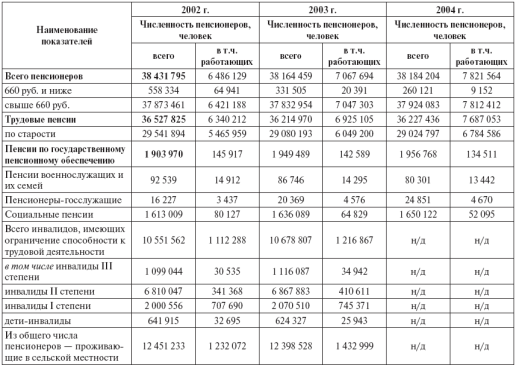 СодержаниеВведение. 2 1. Пенсионная система периода СССР. 3 1.1 Пенсионное обеспечение в эпоху царской России. 3 1.2 Советская пенсионная система. 5 2. Анализ формирования и реформирования пенсионной системы РФ в 1990-2001 гг. 10 2.1 Факторы, диктующие необходимость пенсионной реформы в 1990-2001 гг. 10 2.2 Эволюция пенсионных концепций в России. 13 3. Переход на накопительно-страховую систему пенсионного обеспечения в 2002-2004 гг. 36 3.1 Нормативный и фактический пенсионный возраст. 37 3.2 Численность и структура застрахованных, легализация трудовых доходов 39 3.3 Уровень и динамика реального размера пенсий. 46 3.4 Структура пенсий. 50 Заключение. 52 Список используемой литературы.. 53 ВведениеЗа прошедшее пятнадцатилетие пенсионная система пережила не один кризис - затяжной период дефицита Пенсионного фонда, главного финансового института системы, кризис неплатежей и задолженности, шок после дефолта 1998 г. и т.д. Каждый из этих кризисов давал свои уроки, вносил новые аргументы "за" и "против" реформы и влиял на формирование новых подходов к решению проблемы. Палитра этих подходов довольно богата. На рубеже 2001–2002 гг. реформа вступила в стадию своей реализации - было принято новое пенсионное законодательство, которое принципиально изменило отношения в пенсионной системе. Объект исследования – пенсионная система Российской Федерации. Главный предмет исследования - политика российского государства в пенсионной сфере в 1990-2004 гг., т.е. то, что в западной методологии носит название "policy analysis", - методология, которая в российской науке только начинает складываться. Целью данного исследования является анализ реформирования пенсионного фонда Российской Федерации. Из цели исследования вытекают следующие задачи: 1) Рассмотреть пенсионную систему периода СССР; 2) Дать анализ формирования и реформирования пенсионной системы РФ в 1990-2001 гг.; 3) Охарактеризовать переход на накопительно-страховую систему пенсионного обеспечения в 2002-2004 гг., выявить ее особенности и проблемы. 1. Пенсионная система периода СССР1.1 Пенсионное обеспечение в эпоху царской РоссииПервые государственные пенсии в России были введены в эпоху Петра I. Пенсионное обеспечение получили военные, а именно морские офицеры, которым согласно утвержденному в 1720 году Морскому уставу по "благоустремлению верховной власти" могла быть назначена премия по старости. В XVIII-XIX веках пенсионное обеспечение постепенно было распространено на всех государственных служащих. Окончательно дореволюционная система пенсионного обеспечения госслужащих сложилась во второй половине ХІХ столетия. В отношении гражданских чиновников эта система была, по сути, страховой. Пенсии уволенным в отставку чиновникам, а также пособия их вдовам и сиротам выплачивались из средств так называемых эмеритальных касс, фонды которых формировались из обязательных отчислений от жалованья [13, с.11]. Различия в размере пенсий были очень велики. Пенсии отставного гражданского "генерала" и мелкого чиновника, скажем, гоголевского Акакия Акакиевича, доживи он до пенсии, могли различаться более чем в 50 раз! Все трудящиеся слои населения России были полностью лишены какого-либо государственного социального обеспечения как по старости, так и по инвалидности. Требование распространить систему социального страхования (в том числе и пенсионного обеспечени
