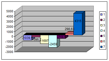 Отже завдяки змінам у цінах порівняно з минулим роком підприємство отримало на 10046,97 грн. більше прибутку від реалізації продукції. Наглядно рівень впливу на прибуток кожного виду продукції продемонстровано на рисунку 2.3