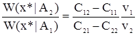 Из двух критериев при известных значениях a,b,c выбирается один дающий минимальную неопределенность решения, т.е. наибольшая из вероятностей повышения или понижения САЛК законченного ИПС, оцененных по выбранному критерию должна быть больше, любой из тех же вероятностей, но оцененных по второму критерию. В случае, когда вероятность повышения САЛК оцененная по одному критерию равна вероятности понижения САЛК, но оцененной по другому критерию, вероятности повышения и понижения САЛК принимаются равными 0,5.