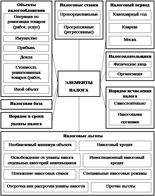 ЛитератураОсновная: 1. Налоговое право: Учебник / Под. ред. С.Г. Пепеляева – М.: Юрист, 2004. 2. Финансовое право: Учебник / Отв. ред. проф., д.ю.н. Н.И. Химичева. М.: Юристь, 2004. 3. Финансовое право Российской Федерации: Учебник / Отв. Ред. М.В. Карасева – М. Юрист, 2002. 4. Финансовое право: Учебник / О.Н. Горбунова, Е.Ю. Грачева и др.; Отв. Ред Е.Ю. Грачева, Г.П. Толстопятенко. – М.: ТК Велби, Изд-во Проспект, 2003. Дополнительная: 1. Финансовое право: Учеб. пособие для вузов / Под ред. проф. М.М. Рассолова. — М.; ЮНИТИ-ДАНА, Закон и право, 2001. 2. Грачева Е.Ю. Финансовое право: Схемы и комментарии: Учебное пособие. -3-е изд., испр. и доп. - М.: Юриспруденция, 1999. 3. Эриашвили Н.Д. Финансовое право: Учебник для вузов. - М.: ЮНИТИ-ДАНА, Закон и право, 2000. Вопрос 1. Понятие налогового права Российской ФедерацииНалоговое право является частью финансового права, одним из основных его разделов. Оно регулирует общественные отношения, возникающие при взимании налогов и сборов. В связи с изменениями, произошедшими в законодательстве в последние годы, часть платежей перестала называться налоговыми. Однако, по сути они близки к налоговым платежам и будут рассмотрены в рамках налогового права. Термин «налоговое право» применяется не только как определение части финансового права. Оно существует в качестве самостоятельной отрасли науки и законодательства, включая при этом нормы не только финансового, но и административного, уголовного и гражданского права. Частично данные нормы тоже будут рассмотрены в данном разделе. Кроме того, налоговое право изучается во многих вузах как отдельная учебная дисциплина. Существует несколько определений налогового права. С точки зрения финансовых правоотношений наиболее полным определением является следующее. Налоговое право — это совокупность норм, содержащихся в законах РФ и принятых на их основе законах субъектов РФ, актов представительных органов местного самоуправления, устанавливающих систему налогов и сборов, общие принципы налогообложения и сборов, основания возникновения, изменения и прекращения отношений собственников и государства по уплате налогов и сборов, формы и методы налогового контроля, ответственность за нарушение налоговых обязательств.[1] Источники налогового права, как и источники финансового права, делятся на несколько групп. В первую группу попадают положения Конституции РФ, которая относит установление общих принципов налогообложения на территории страны к сфере совместного ведения Федерации и ее субъектов.[2] Кроме того, к ведению федеральных органов государственной власти относятся вопросы определения списка налогов и сборов, взимаемых в РФ, установления федеральных налогов и сборов. Конституция РФ так же определила, что международное законодательство имеет приоритет над федеральным законодательством.[3] Некоторые международные договоры будут рассмотрены в рамках данного раздела. Во вторую группу необходимо отнести законодательные акты, которые устанавливают основы налоговой системы РФ. Первым таким законом стал Закон РФ «Об основах налоговой системы в Российской Федерации» .[4] Этот закон, впервые в нашей стране, урегулировал налоговые правоотношения, определил общие положения налогового права в едином нормативном акте, а именно: принципы построения налоговой системы РФ и ее содержание, т.е. перечень нал