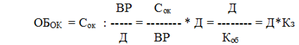 Этот показатель характеризует прибыль, получаемую на каждый рубль оборотного капитала, и отражает финансовую эффективность работы организации (предприятия), так как именно оборотный капитал обеспечивает оборот всех ресурсов. В российской хозяйственной практике оценка эффективности использования оборотного капитала осуществляется через показатели его оборачиваемости. Поскольку критерием оценки эффективности управления оборотными средствами является фактор времени, используются показатели, отражающие общее время оборота, или длительность одного оборота, в днях, скорость оборота. Продолжительность одного оборота складывается из времени пребывания оборотного капитала в сфере производства и сфере обращения, начиная с момента приобретения производственных запасов и кончая поступлением выручки от реализации продукции, выпущенной организацией. Иными словами, длительность одного оборота в днях охватывает продолжительность производственного цикла и количество времени, затраченного на продажу готовой продукции, и представляет период, в течение которого оборотные средства организации проходят все стадии кругооборота. Длительность одного оборота (оборачиваемость оборотного капитала) в днях (ОБОК ) определяется делением оборотного капитала Сок на однодневный оборот, определяемый как отношение объема реализации или выручки от продаж (ВР) к периоду в днях (Д) или же как отношение периода к числу оборотов (Коб ):