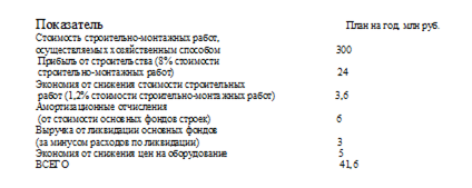 Как следует из данных табл. 5.1, на стройке имеются возможности для высвобождения ресурсов, вложенных в материальные ценности и дебиторскую задолженность, в размере 7 млн руб. Но эта сумма не может полностью приниматься в качестве мобилизуемых ресурсов, так как ее часть должна быть направлена для погашения кредиторской задолженности (подрядчикам за выполненные работы, поставщикам, работникам стройки). Допустим, что кредиторская задолженность должна быть снижена в планируемом году на 3 млн руб. Тогда сумма мобилизации внутренних ресурсов составит 4 млн руб. (7 млн руб. — 3 млн руб.). Экономия от снижения стоимости строительно-монтажных работ планируется в размере задания, которое устанавливается в процентах к сметной стоимости. Амортизационные отчисления от капитальных вложений основных фондов строек, осуществляемых хозяйственным способом, в части, предназначенной на капитальные вложения, учитываются как источник финансирования капитальных вложений. Средства от ликвидации временных зданий, сооружений и строительных механизмов определяются как разница между выручкой от их реализации и расходами по разборке и демонтажу. Например, временные постройки к концу строительства разбираются и могут быть реализованы другим предприятиям. Пример расчета прибыли и экономии от строительных работ, амортизационных отчислений от основных фондов строек, выручки от ликвидации основных фондов на предприятии приведен ниже.