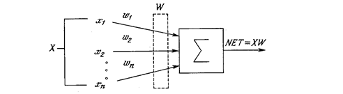 Рисунок 3 – Штучний нейрон Сигнал NET далі, як правило, перетворюється активаційною функцією F і дає вихідний нейронний сигнал. Активаційна функція може бути як звичайною лінійною функцією (6) так і нелінійною: логістична (7) та гіперболічний тангенс (8).