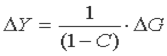 где Y – чистый доход; G – государственные расходы; С – предельная склонность к потреблению чистого личного дохода. Мультипликатор государственных расходов показывает, на сколько единиц возрастает доход в ответ на увеличение государственных расходов на одну единицу. Мультипликатор государственных расходов равен мультипликатору инвестиций, поэтому изменение объема государственных расходов приводит в движение процесс мультипликации национального дохода, идентичный тому, который осуществляется при изменении частных инвестиций. Такая политика называется экспансионистской политикой дефицитных расходов (deficit spending), т.е. политикой расходов, финансируемых с помощью дефицита. Другой вид политики маневрирования бюджетом – политика дефицита без расходов (deficit without spending).