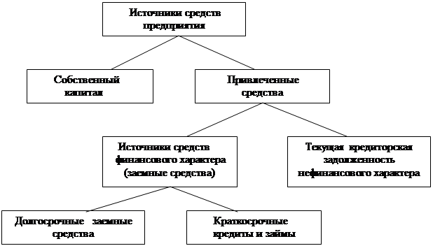 Рисунок 1.1. - Классификация источников средств для анализа финансовой устойчивости предприятия Методика анализа финансовой устойчивости Сергеева В.Н. самая короткая и представлена лишь тремя показателями – коэффициентами. Можно также заметить, что имеют место показатели одинаково называемые, но отличающиеся нюансами расчета и наоборот, рассчитываемые по одной методике, но имеющие различные названия. Что касается рекомендуемых к расчету показателей, в Методических указаниях по проведению анализа финансового состояния организаций от 23 января 2001 г. №16 предусмотрены следующие показатели оценки финансовой устойчивости и платежеспособности: -степень платежеспособности общая (к4) определяется как частное от деления суммы заемных средств (обязательств) организации на среднемесячную выручку; данный показатель характеризует общую ситуацию с платежеспособностью организации, объемами ее заемных средств и сроками возможного погашения задолженности организации перед ее кредиторами; -коэффициент задолженности по кредитам банков и займам (к5) вычисляется как частное от деления суммы долгосрочных пассивов и краткосрочных кредитов банков и займов на среднемесячную выручку; -коэффициент задолженности другим организациям (к6) вычисляется как частное от деления суммы обязательств по строкам “поставщики и подрядчики”, “векселя к уплате”, “задолженность перед дочерними и зависимыми обществами”, “авансы полученные” и “прочие кредиторы” на среднемесячную выручку; -коэффициент задолженности фискальной системе (к7) определяется как частное от деления суммы обязательств по строкам “задолженность перед государственными внебюджетными фондами” и “задолженность перед бюджетом” на среднемесячную выручку; -коэффициент внутреннего долга (к8) определяется как частное от деления суммы обязательств по строкам “задолженность перед персоналом организации”, “задолженность участникам (учредителям) по выплате доходов”, “доходы будущих периодов”, “резервы предстоящих расходов”, “прочие краткосрочные обязательства” на среднемесячную выручку; - степень платежеспособности по текущим обязательствам (к9) определяется как отношение текущих заемных средств (краткосрочных обязательств) организации к среднемесячной выручке; -коэффициент покрытия текущих обязательств оборотными активами (к10) определяется как отношение стоимости всех оборотных средств в виде запасов, дебиторской задолженности, краткосрочных финансовых вложений, денежных средств и прочих оборотных активов к текущим обязательствам организации; -собственный капитал в обороте (к11) вычисляется как разность между собственным капиталом организации и ее внеоборотными активами; -доля собственного капитала в оборотных средствах (коэффициент обеспеченности собственными средствами) (к12) рассчитывается как отношение собственных средств в обороте ко всей величине оборотных средств; -коэффициент автономии (финансовой независимости) (к13) вычисляется как частное от деления собственного капитала на сумму активов организации. (1 Метод. указ.) Таким образом, исходя из выше сказанного, можно сделать следующие выводы: - Финансовая устойчивость – это экономическая категория, выражающая такую систему экономических отношений, при которых предприятие формирует платежеспосо
