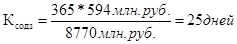 где ВР - выручка от реализации; КЗ - кредиторская задолженность. На начало 2008 года: На конец 2008 года: Значение показателя по сравнению с прошлым периодом увеличилось, это значит, что предприятие начало быстрее производить расчет с кредиторами. Средний срок оборота кредиторской задолженности отражает средний срок возврата коммерческого кредита предприятием: