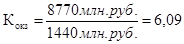 Приведенная факторная модель описывает как производственную (второй и третий факторы), так и финансовую (первый и четвертый факторы) деятельность предприятия. Таким образом, рентабельность продаж уменьшилась, так как торговая наценка снизилась до уровня 6,9% (в 2007 году торговая наценка составляла 9,6%). Ресурсоотдача за отчетный период увеличилась, и снизилась зависимость предприятия от заемных средств. Коэффициент общей оборачиваемости капитала (Кок) отражает скорость оборота всего капитала предприятия и рассчитывается по формуле: