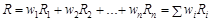 де i— вид цінного папера; Ri — дохідність i-го цінного папера; wi— частка i-го цінного папера у вартості портфеля; n— кількість пакетів різних цінних паперів, що входять до портфеля. За цією формулою визначають фактичну й очікувану дохідність портфеля цінних паперів. Зазначимо, що wi— величина, пропорційна вартості портфеля, інвестованої в i-ті цінні папери (тобто wi— сума, інвестована у і-ті цінні папери, поділена на загальну вартість портфеля). Сума всіх wi має дорівнювати одиниці. Відшукати на практиці цінні папери з від’ємною кореляцією дуже важко (майже неможливо). Тому навіть ті портфелі, що поєднують дуже велику кількість пакетів цінних паперів, містять певну міру ризику. Але в будь-якому разі цей ризик буде меншим, ніж за умови вкладення коштів у цінні папери одного емітента. Портфельні інвестори вимагають компенсації (премії) за ризик. Однак виправданою може бути компенсація лише за ризик, якого неможливо уникнути диверсифікацією. Оскільки диверсифікований ризик може бути істотно знижений диверсифікацією, більшість інвесторів віддають перевагу великим урізноманітненим портфелям цінних паперів або залученню до портфеля акцій інвестиційних фондів з широко диверсифікованим власним портфелем. За цих умов переважає системний ризик, причиною якого є загальні зрушення на ринку цінних паперів. Системний ризик за своїм змістом відображає той факт, що переважна кількість цінних паперів зазнає впливу певних системних економічних явищ, якими є нестабільна політична ситуація, спад виробництва, інфляція, падіння цін на енергоносії тощо. Для поміркованого інвестора лише ринковий ризик (b-ризик) може становити небезпеку, бо диверсифікованого ризику можна цілком уникнути. Рівень b-коефіцієнта диверсифікованого портфеля є середньою величиною b-коефіцієнтів усіх цінних паперів, які до нього входять: