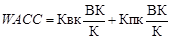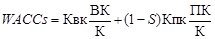 де Квк — очікувана ставка вартості власного капіталу; Кпк — очікувана ставка вартості позичкового капіталу; К — сума капіталу підприємства; ВК — сума власного капіталу; ПК — сума позичкового капіталу. Середньозважена вартість капіталу показує середню дохідність, якої очікують (вимагають) капіталодавці (власники та кредитори), вкладаючи кошти в підприємство. Вона залежить від структури капіталу, а також ціни залучення капіталу від власників і кредиторів. Зазначену модель можна деталізувати, виокремивши власний і позичковий капітал. Зокрема, вартість власного капіталу можна розраховувати в розрізі капіталу, залученого в результаті емісії простих і привілейованих акцій, реінвестованого прибутку тощо. Позичковий капітал можна поділити на короткострокові та довгострокові банківські позички, комерційні позички, облігаційні позички та ін. Очікувана ставка вартості позичкового капіталу визначається на основі аналізу фінансових відносин підприємства з його кредиторами і включає всі витрати, пов’язані із залученням позичкового капіталу, в т.ч. процентні платежі, дизажіо, різного роду збори тощо. Ця ставка може відповідати кредитній ставці, за якою підприємство залучає (чи може залучити) кредити. За наявності відповідних розрахункових даних ставка вартості позичкового капіталу може обчислюватися за методом внутрішньої норми прибутковості (IRR). Перед фінансистами досить часто постає питання, як розрахувати вартість позичкового капіталу в частині забезпечення наступних витрат і платежів, поточних зобов’язань за розрахунками тощо, на які не нараховуються проценти (та інші платежі) за їх користування. Можливі два варіанти вирішення цієї проблеми: згадані складові позичкового капіталу не враховуються при визначенні WACC, тобто в процесі розрахунків загальна сума капіталу зменшується на ці позиції; урахування зазначених позицій на рівні з іншими фінансовими зобов’язаннями, при цьому застосовується нульова ставка залучення цієї частини капіталу. Заслуговує на увагу той факт, що в англосаксонській практиці фінансової діяльності домінує перший підхід, тобто при розрахунку середньозваженої вартості капіталу здебільшого враховуються власний капітал та фінансова заборгованість. На практиці при розрахунку вартості залучення позичкового капіталу слід враховувати податковий фактор. Якщо S — податковий мультиплікатор (коефіцієнт, який характеризує ставку податку на прибуток), а проценти за користування позичками відносяться на валові витрати підприємства, то модель визначення середньозваженої вартості капіталу можна уявити в такому вигляді: