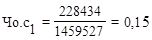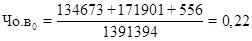 Таким чином на початок звітного періоду частка довгострокових фінансових інвестицій складає 0,11, а на кінець 0,12, отже відбулось збільшення на 0,01 за рахунок збільшення доходів від фінансових інвестицій. 4. Частка оборотних виробничих активів розраховується як відношення оборотних виробничих фондів до активів. Цей розрахунок характеризує рівень виробничого потенціалу підприємства, забезпеченість виробничого процесу засобами виробництва [32, c.145].
