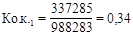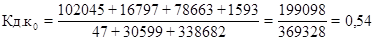 Значення даного коефіцієнту повинно зменшуватись, що і відбулось в даній ситуації. Таким чином, на початок року оборотність активів складала 0, 31, а на кінець 0,24, отже відбулось зменшення на 0,07 за рахунок зменшення виручки від реалізації. 2. Коефіцієнт оборотності обігових коштів розраховується як відношення чистої виручки від реалізації до суми оборотних коштів [22, c. 46].