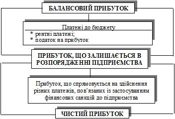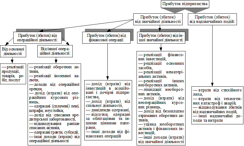 Рис. 1.2. Структурно-логічна схема формування прибутку підприємства відповідно до національних положень (стандартів) бухгалтерського обліку в Україні На рис. 1.2 наведено структурно-логічну схему формування прибутку від реалізації продукції, а також названо основні показники, що впливають на прибуток від реалізації.