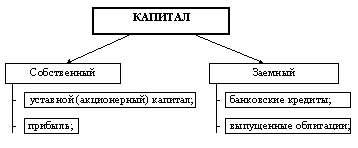 Рисунок 1. Структура капитала Приведенное на рис 1 разделение капитала прямо следует из баланса предприятия. Под величинами собственного и заемного капитала чаще всего понимают значения сальдо соответствующих счетов правой части баланса. Такой "бухгалтерский" подход к структуре капитала является традиционным среди большинства отечественных экономистов и управляюших. Данные из пассива баланса используются в методиках теории финансового анализа для определения показателей платежеспособности предприятия. Это направление исследования капитала фирмы достаточно глубоко теоретически проработано в отечественной экономической науке и нашло широкое практическое использование в методах экономического анализа. Однако наряду с упомянутым выше подходом существует другое направление анализа капитала, которое является составной и важнейшей частью современной теории финансов. Данное направление связано с теоретическим исследованием структуры капитала фирмы и поиском оптимального соотношения собственного и заемного капитала. Методы анализа структуры капитала пока еще мало известны отечественным специалистам. За последнее время появилось весьма немного работ, в которых бы излагались положения современной теории анализа структуры капитала. В то же время недостатком всех таких изданий и публикаций является отсутствие примеров, которые показали бы практическую значимость теории. Между тем, структура капитала является не отвлеченным, оторванным от действительности предметом исследования, а важнейшим понятием, которое используется в методиках определения оптимального способа финансирования инвестиционных программ, расчета экономической эффективности инвестиционных проектов, прогнозирования цен акций, оценки цены капитала фирмы и т.д. Практически решение любой задачи управления капиталом фирмы связано с методологией анализа структуры капитала. Главными понятиями современной теории финансов являются цена и стоимость капитала. Необходимо отметить, что следующие ниже определения и теоретические положения применимы к предприятиям, организованным в форме открытых акционерных обществ. Ценой собственного капитала фирмы называют произведение рыночной цены акции на количество акций, находящихся в обращении: E = S * Ns , (1) где: E - цена собственного капитала фирмы; S - рыночная цена одной акции фирмы; Ns - количество акций фирмы в обращении. D = B * Nb , (2) где: в - цена долга фирмы; B - цена 1-ой облигации, эмитированной фирмой; Nb - количество облигаций в обращении. Если определение цены долга применять к современной российской действительности, то возникает затруднение, связанное с тем, что практика заимствования капитала путем продажи облигаций на финансовом рынке пока очень слабо распространена в российской экономике. Подавляющую часть долговых обязательств открытых акционерных обществ составляют банковские кредиты. Поэтому ценой долга можно считать балансовую стоимость обязательств перед банком по полученным займам. [2, с.74] Общей ценой фирмы называют сумму цен собственного и заемного капитала: T = E + в , (3) где: T - общая рыночная цена фирмы. Коэффициентом структуры капитала называется отношение: x = в / T (4) где: x - коэффициент структуры капитала. Помимо цены характеристикой каждого вида капитала является стоимость (cost). Cтоимост