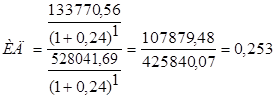 где, Pt – результат полученный Zt – затраты Тр - расчетный год (n) d – коэффициент дисконтирования t – тот % прибыли который получить инвестор ИД означает отношение суммарно дисконтированного результата с суммарным дисконтированным затратам, характеризуют относительную «отдачу проекта» на вложенные в него средства. Они могут вычисляться как для дисконтированных, так и для недисконтированных денежных потоков.