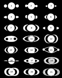 2 - К. Шайнер, 1614 год; 3 - П. Гассенди, 1633 год; 4 - Дж. Риччиоли, 1640 год; 5, 6, 7, 8 - Я. Гевелий, 1640-1650 годы; 9, 10 - П. Гассенди, 1645 год; 11 - Е. Дивини, 1647 год; 12 - Ф. Фонтана, 1648 год; 13, 14, 15 - Дж. Риччиоли, 1648-1650 годы; 16, 17- X. Гюйгенс, 1656, 1659 год; 18 - Дж. Кампани, 1664 год; 19 - В. Болл, 1665 год; 20 - Я. Гевелий, 1675 год;