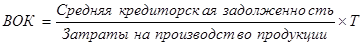 Где: ПОЦ – продолжительность операционного цикла; ВОК – время обращения кредиторской задолженности; ВОЗ – время обращения производственных запасов; ВОД – время обращения дебиторской задолженности; Т – длина периода, по которому рассчитываются средние показатели. Расчет можно выполнять двумя способами: 1. по всем данным о дебиторской и кредиторской задолженности; 2. по данным о дебиторской и кредиторской задолженности, непосредственно относящейся к производственному процессу.