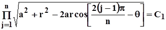Граничные условия: на контуре питания j=jк=const при rj=rк; на контуре скважины j=jс=const при r1=rс; rj(j¹1)=2a sin[(n-1)p/n]. Используя данные граничные условия преобразуем формулу (4.20)
