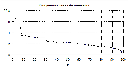 Де m – порядковий номер члена ранжованого ряду; n – кількість членів ряду, тобто кількість років спостережень. Отримані значення Р наносять на сітківку ймовірностей (тип сітківки залежить від співвідношення СS /СV ) і проводять влавну усереднюючи криву емпіричну криву забезпеченості. Для згладжування (вирівнювання) та екстраполяції (продовження) емпіричних кривих застосовують теоретичні (аналітичні) криві забезпеченості. Як правило, застосовується аналітична крива три параметричного гама-розподілу при будь-якому співвідношенні СS /СV та біноміальна крива розподілу при СS >2СV .