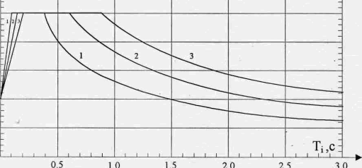 Рис.2-1. Коэффициент динамичности b ( Ti ) для трех категорий грунтов основания. Обозначения: Кривая 1 - для грунтов I категории; кривая 2 - для грунтов I-II и IIкатегорий; кривая 3 - для грунтов II-III и III категорий Таблица 2.4 Значения параметров b0 , T1, T2