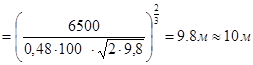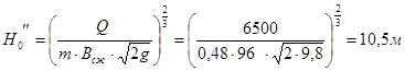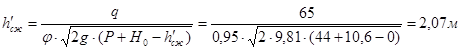Из графика (при Кф = 178543) h0 = 8,20 м. Определим глубину воды в сжатом сечении в конца быстротока с учетом hкр