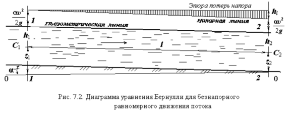 (значения параметров записаны для центров живых сечений потока) α 1 = α2 = α; h 1 = h2 = h;