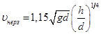 где h – глубина. d – средневзвешенный диаметр частиц грунта (берутся в метрах) В то же время скорости не должны быть ниже критических значений скоростей, при которых начинается выпадение наносов и происходит заиление каналов, ведущее к их зарастанию. Эти скорости называются незаиляющими . Незаиляющие скорости в каналах могут быть ориентировочно определены по формуле Гиршкана
