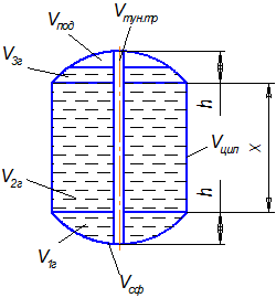 Объём горючего в цилиндрической части БГ с учётом объёма туннельной трубы: