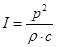 де C - швидкість звуку, м/с; f - частота, герц. 5. Сила звуку (інтенсивність) - це кількість енергії, що проходить в результаті поширення звуку через площу 1м2 , розміщену перпендикулярно до напряму поширення звукової хвилі за одиницю часу. Інтенсивність звуку, Вт/м2 , пов'язана із звуковим тиском залежністю