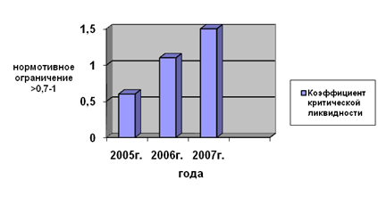 Рисунок 9. Динамика изменения коэффициента критической ликвидности по годам.